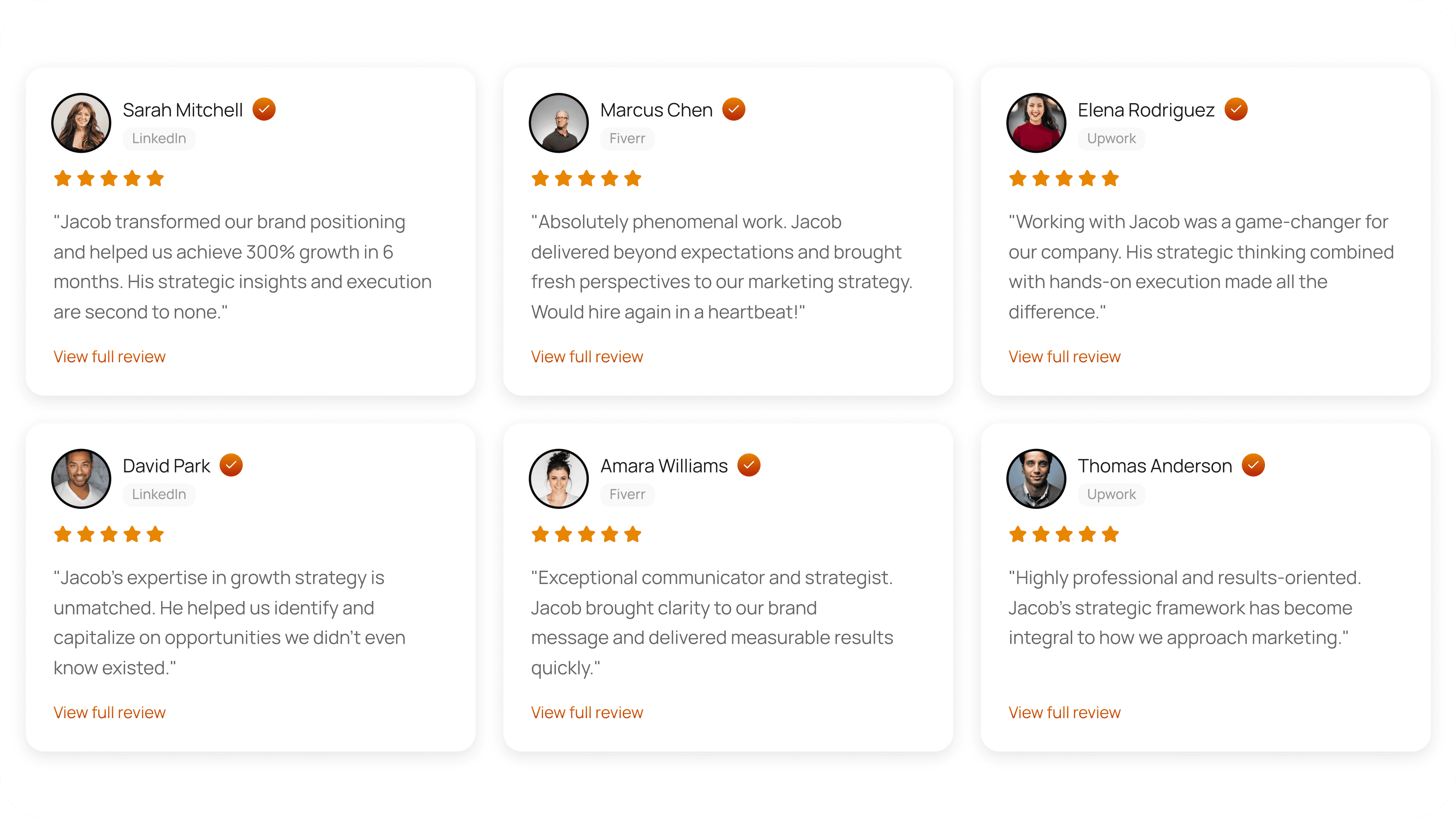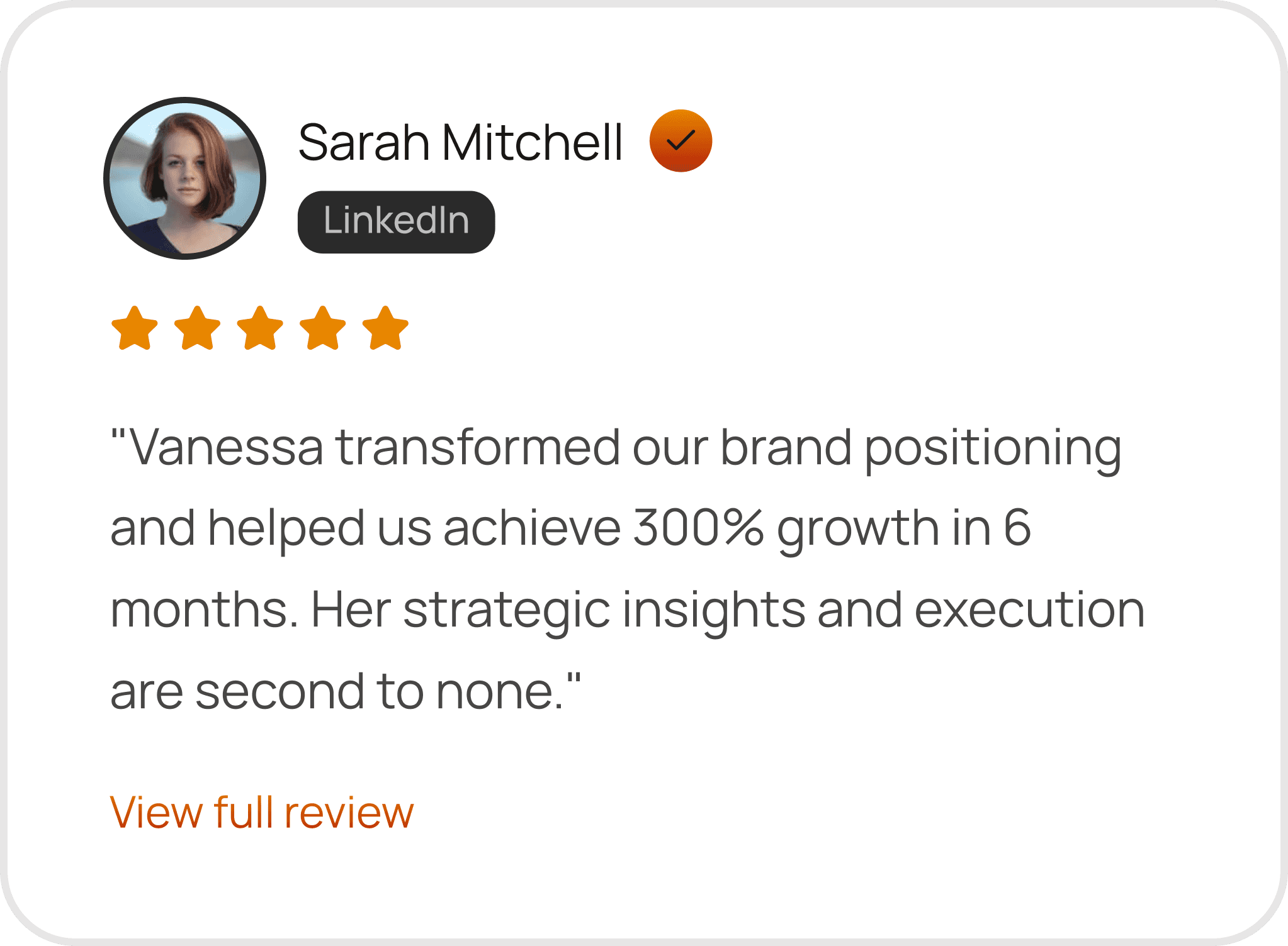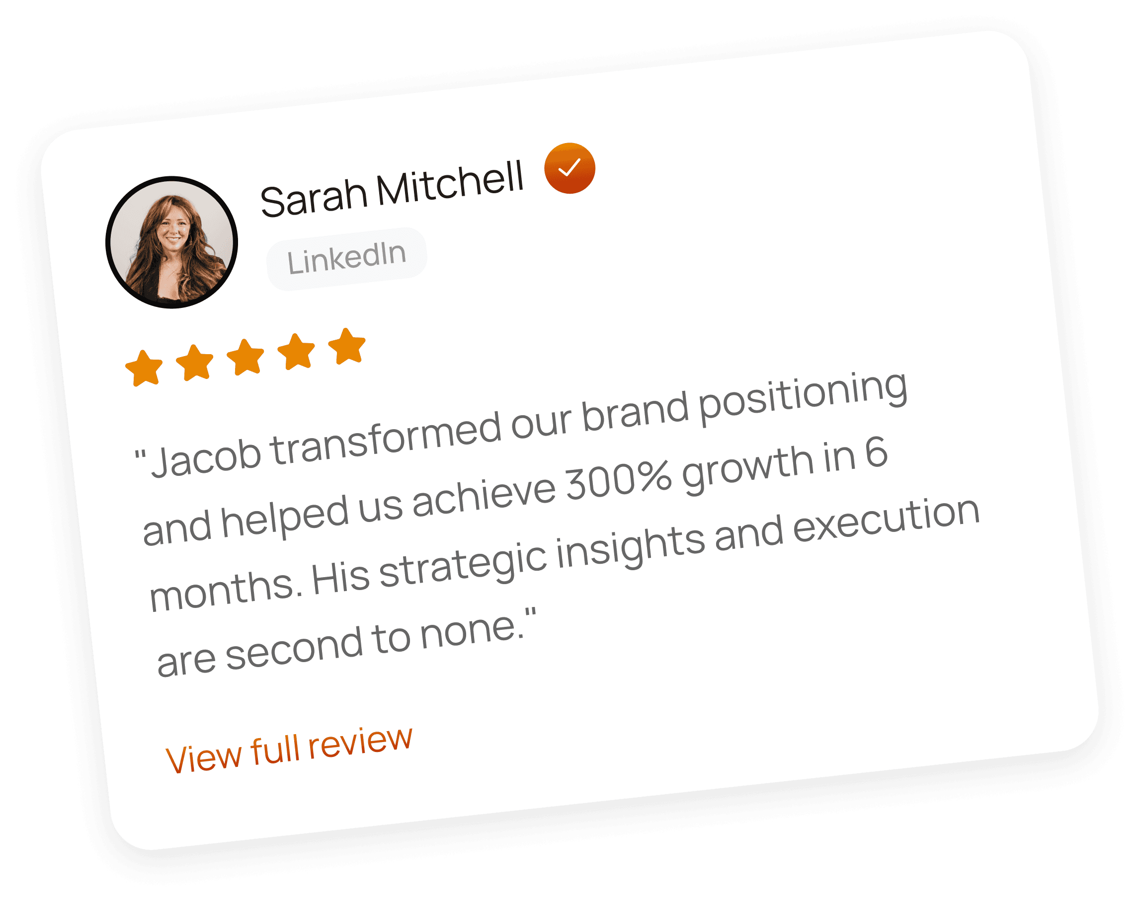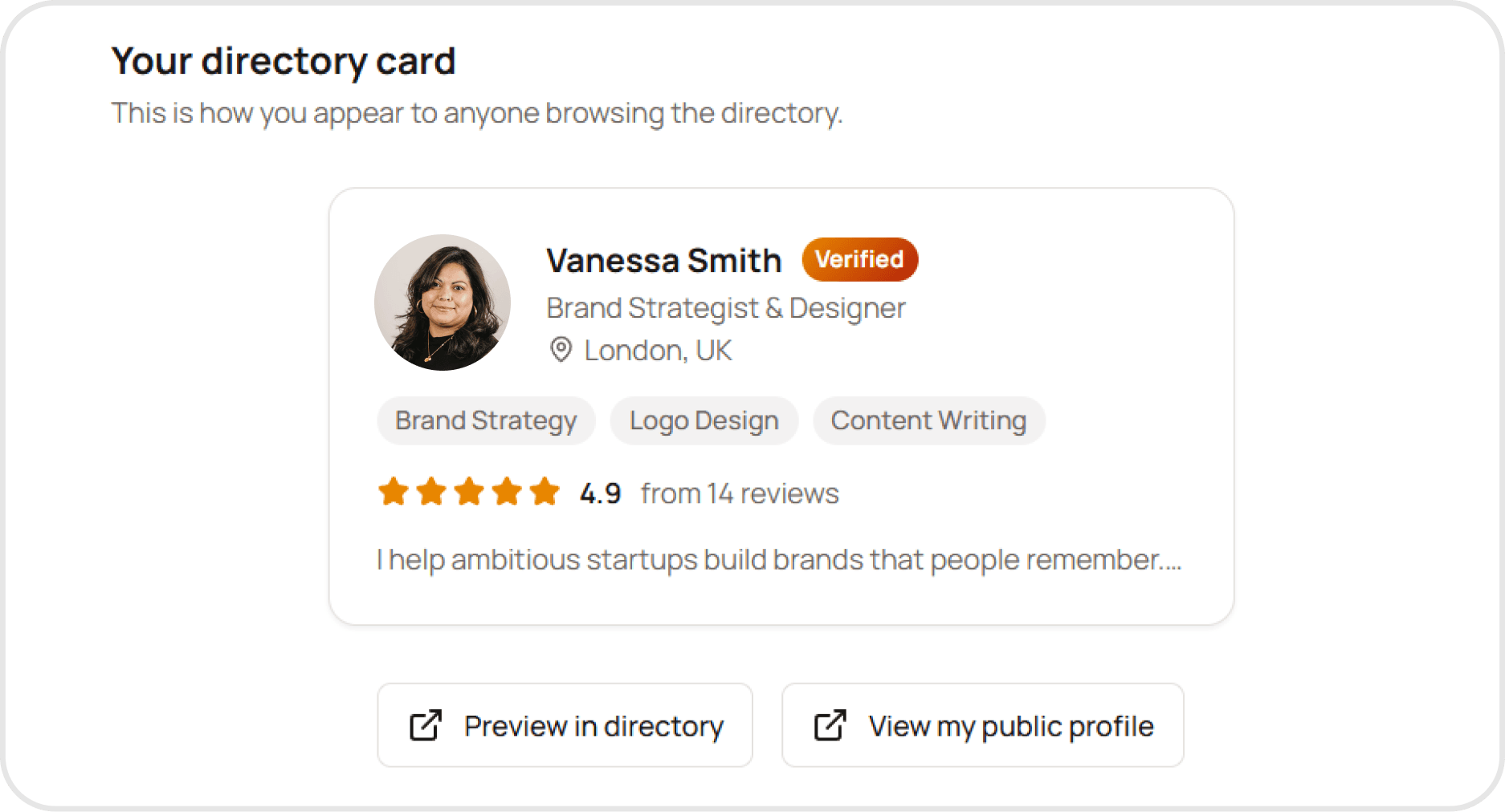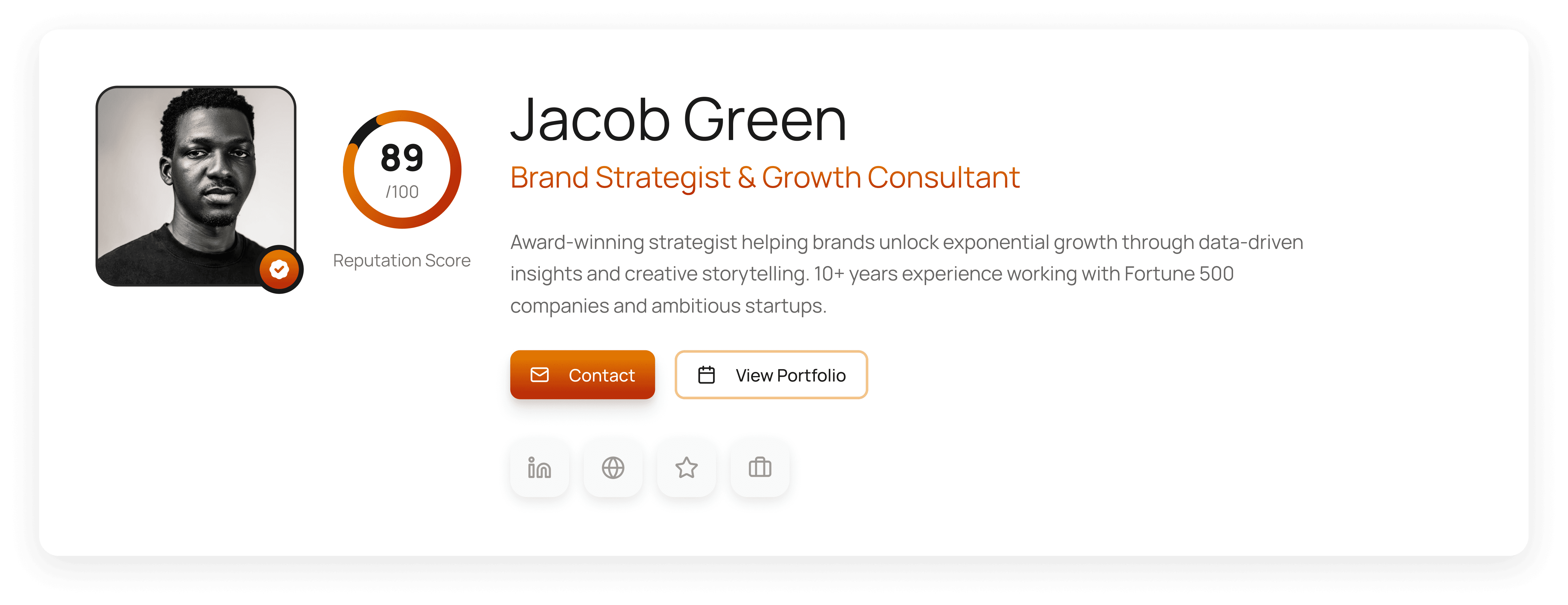 A compact, shareable snapshot of who you are and what clients say about you.